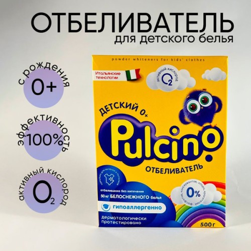Отбеливатель Pulcino / Пульчино 0+ кислородный, гипоаллергенный, порошок, для детского белья, 500г / отбеливание. Избавиться от пятен теперь стало легко! Отбеливатель Pulcino 0+ с активным кислородом - эффективное, удобное и действенное средство от пятен для любых видов детских тканей. Предназначен для усиления действия средств для стирки и отбеливания изделий различных видов тканей, кроме шерсти, шелка и кожи. Форма порошка позволит удобно и легко использовать средство для разных целей. Усовершенствованная формула средства позволяет отбеливателю проникать глубоко внутрь загрязнения и разрушать его изнутри. Преимущества: - усиление белизны; - удаление пятен; - защита цвета, белые вещи стирать отдельно от цветных. - гипоаллергенно; - защита волокон. Вес - 500г. Состав: пятновыводитель: 5-15%: кислородсодержащий отбеливатель; <5%: анионные ПАВ, поликарбоксилаты, энзимы, ЭДТА. Будьте осторожны с нежными и натуральными, а также окрашенными тканями, перед применением внимательно изучите инструкцию. Отбеливатель для белья / кислородный отбеливатель и пятновыводитель / от пятен на одежде / порошок отбеливатель.