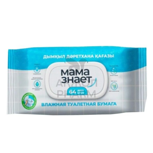 Мама Знает влажная туалетная бумага 4-слойный 64 шт, смешанная целлюлоза