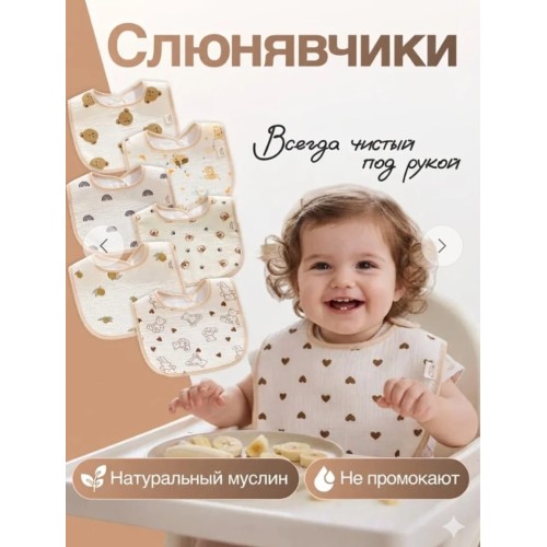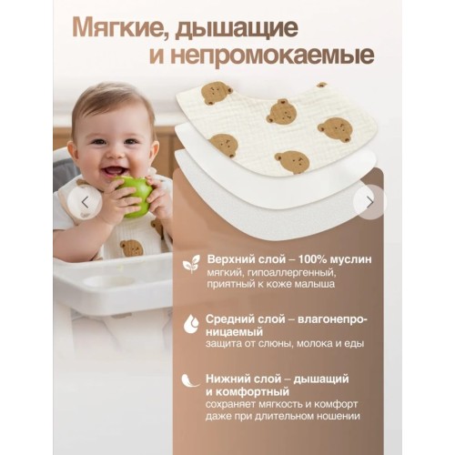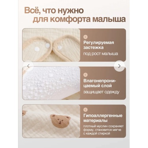 Нагрудник муслиновый непромокаемый на кнопке 0+ 1 шт